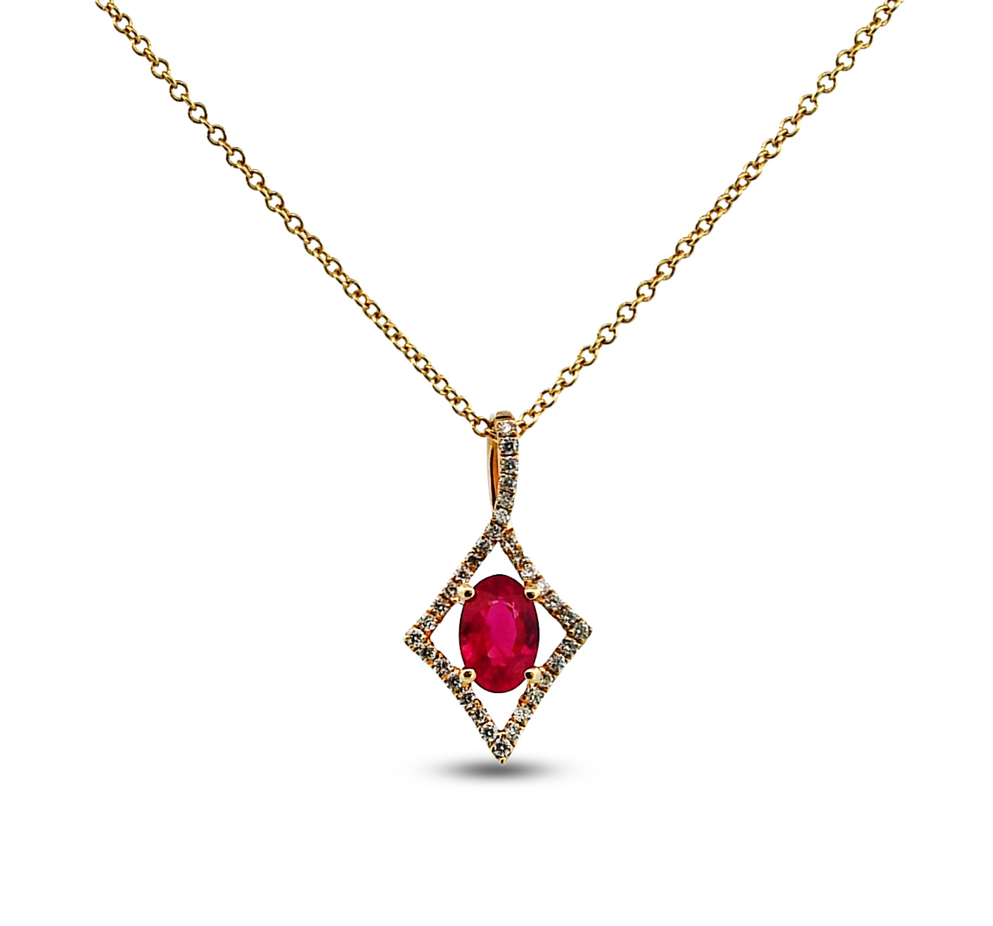 14Y 0.66CT OV RUBY / 0.12TW RD DIAMOND PENDANT